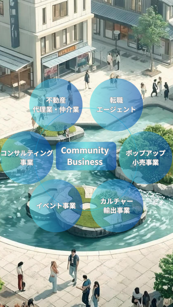 | 事業内容 | コンサルティング事業、不動産代理業・仲介業、転職エージェント、カルチャー輸出事業、イベント事業、ポップアップ小売事業 |